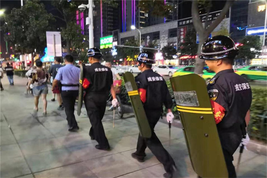 為忠實踐行“十六字總要求”,進一步凝聚警心、鼓舞士氣,激發(fā)斗志、砥礪擔當,堅決打贏新中國成立70周年大慶安保維穩(wěn)這場硬仗,“踐行新使命、忠誠保大慶”實踐活動實施, 2019年9月7日由樊城區(qū)漢江派出所民警帶隊,戎安保安公司隊員分為兩班輪流在中心城區(qū)人員密集場所開展義務巡邏。